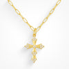 This Crossroads Necklace is the perfect way to make a statement without saying a word! It's subtle yet sophisticated design featuring a simple cross and clear CZ stones is sure to turn heads. Wear it to instantly add a sparkle to any outfit!