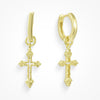 Elevate your everyday style with these dainty gold cross hoop earrings. Featuring a sleek hoop paired with a delicate dangling cross charm, they’re the perfect blend of timeless elegance and modern minimalism — ideal for layering or wearing solo.
