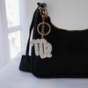 Sparkling zodiac sign bag charm with gem detailing and gold hardware. A stylish way to personalize your bag or keys while showing off your star sign